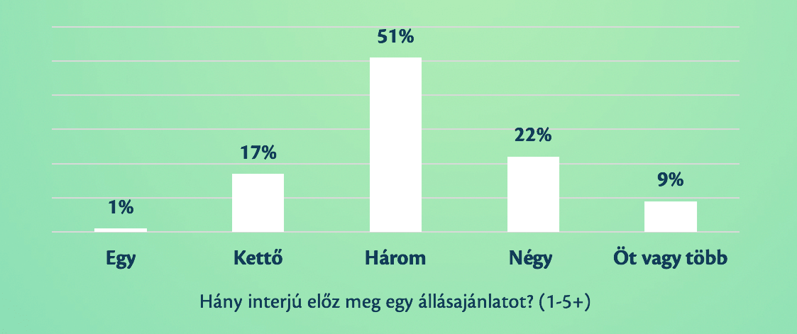 A Recruiter Sentiment Study MRI Network kutatása alapján egy állásajánlatot 3 interjú előz meg átlagosan (51%-ban), ami a megnövekedett jelentkező számnál kifejezetten nagy kapacitás problémákat vethet fel.